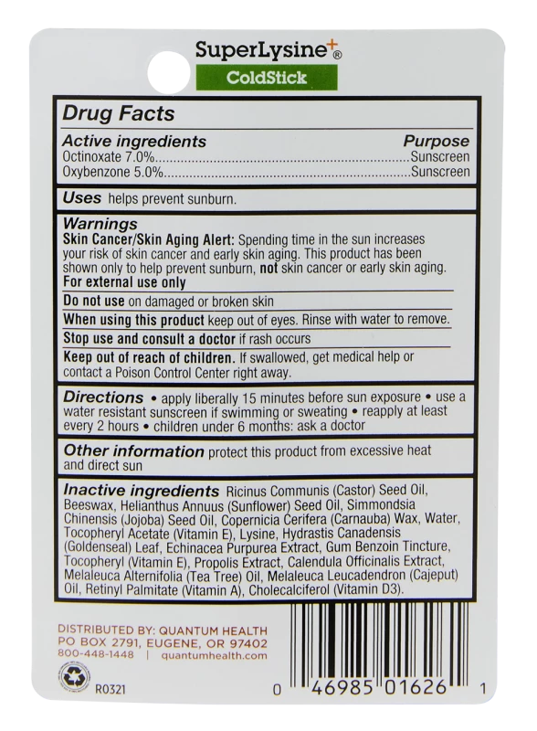 The SuperLysine+® ColdStick is a convenient for quick, soothing care throughout the day. The petroleum-free Coldstick formulation is a variation on our Super Lysine+® ointment including: