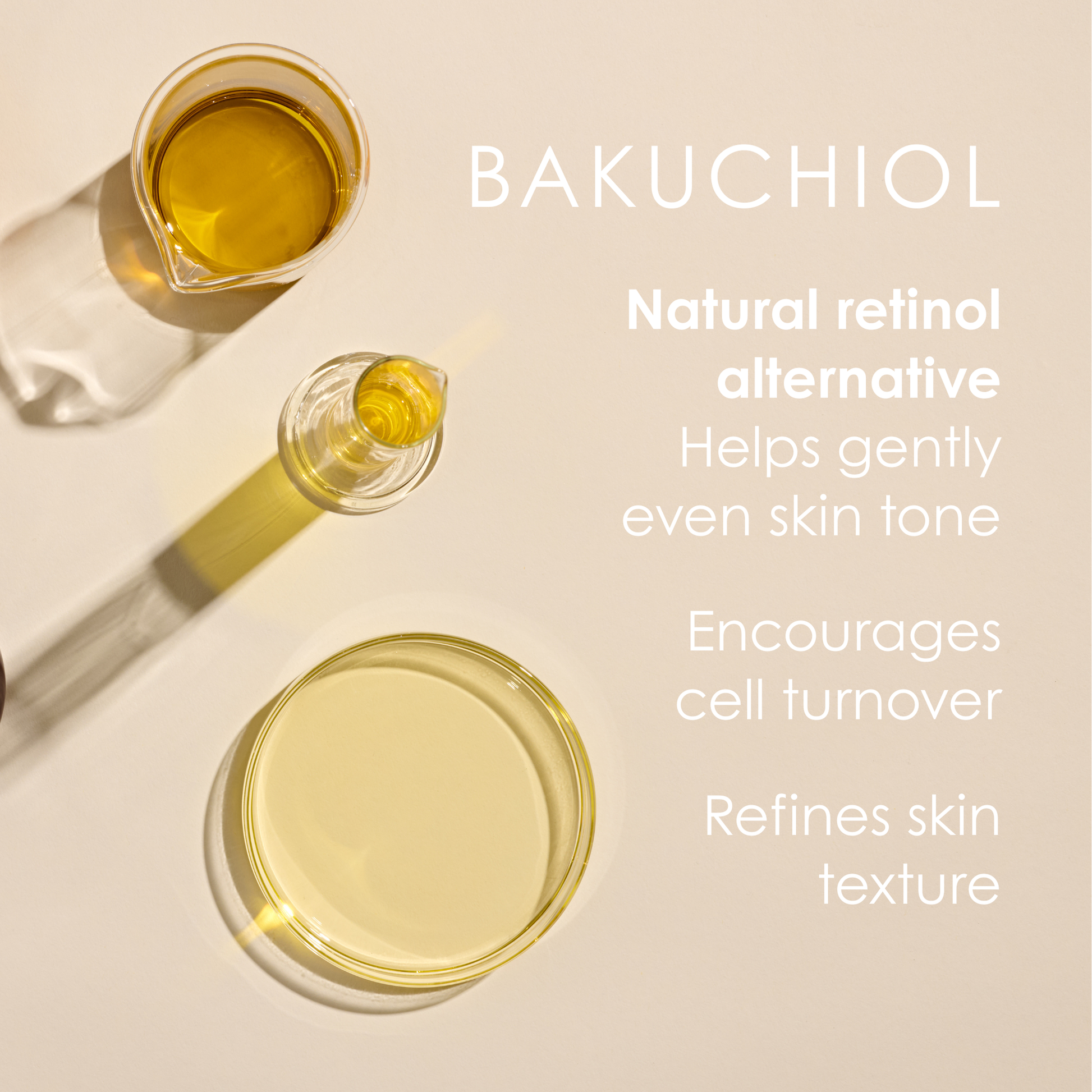 Bakuchiol (natural vitamin A alternative from the fruit) is a gentle, plant-based retinol that smooths texture, softens fine lines and helps even skin tone.